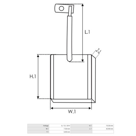 H.1 [ mm ] 15.20 W.1 [ mm ] 7.30 L.1 [ mm ] 42.90 T.1 [ mm ] 6.00