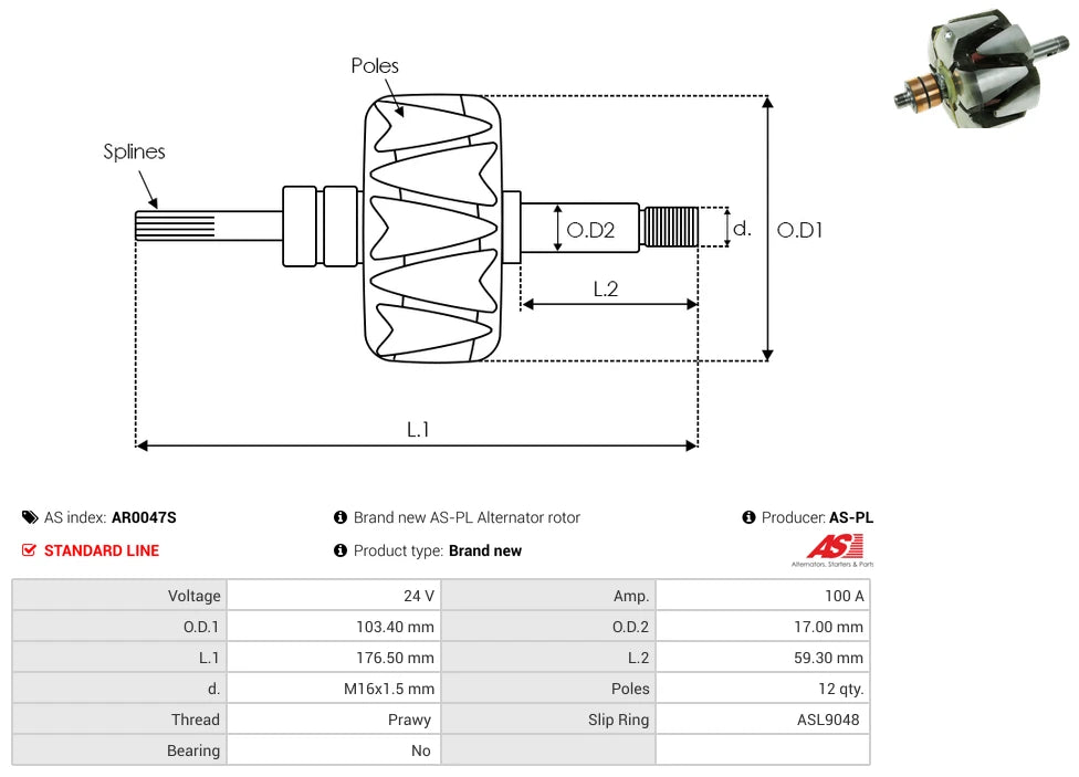 AR0047S Alternator Rotor